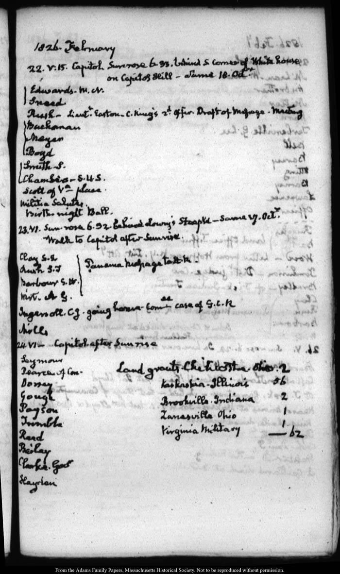 View full, authoritative transcriptions with page images of the diaries at John Quincy Adams Digital Diary part of the Primary Source Cooperative at the MHS.