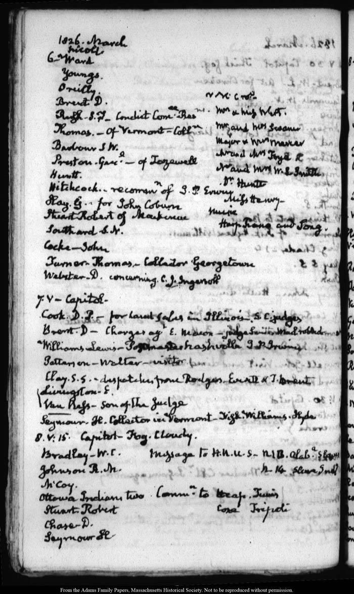 View full, authoritative transcriptions with page images of the diaries at John Quincy Adams Digital Diary part of the Primary Source Cooperative at the MHS.