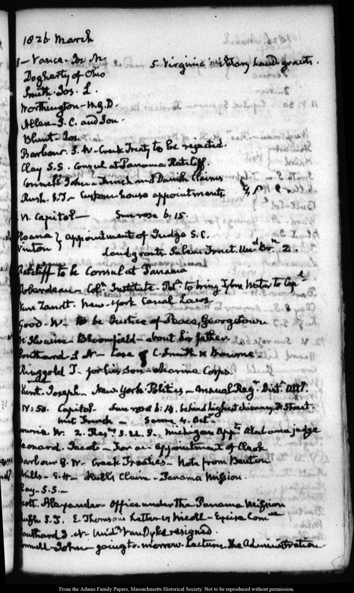 View full, authoritative transcriptions with page images of the diaries at John Quincy Adams Digital Diary part of the Primary Source Cooperative at the MHS.