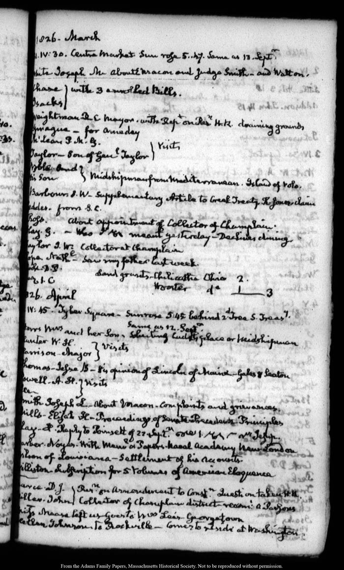 View full, authoritative transcriptions with page images of the diaries at John Quincy Adams Digital Diary part of the Primary Source Cooperative at the MHS.