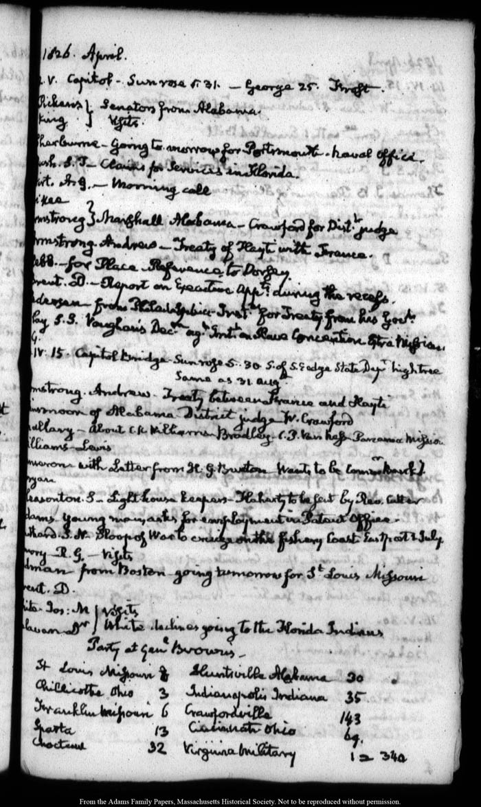 View full, authoritative transcriptions with page images of the diaries at John Quincy Adams Digital Diary part of the Primary Source Cooperative at the MHS.