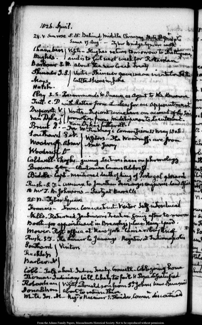 View full, authoritative transcriptions with page images of the diaries at John Quincy Adams Digital Diary part of the Primary Source Cooperative at the MHS.