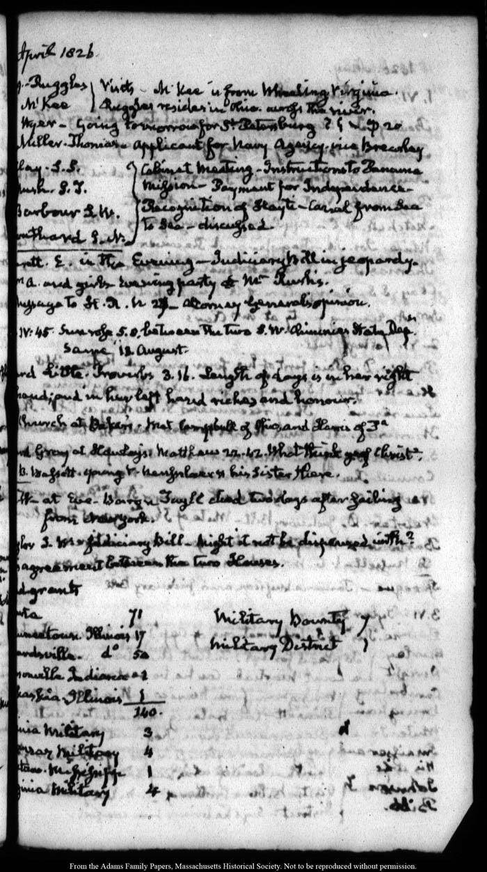 View full, authoritative transcriptions with page images of the diaries at John Quincy Adams Digital Diary part of the Primary Source Cooperative at the MHS.