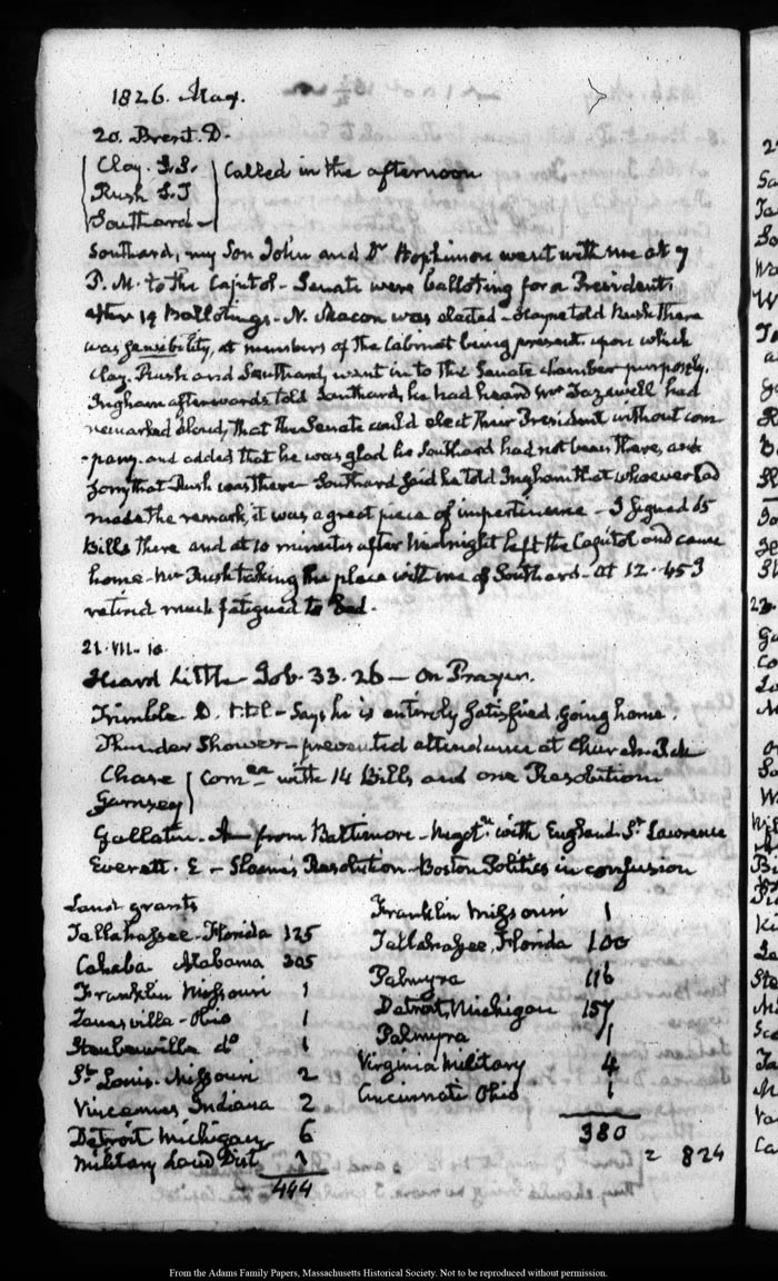 View full, authoritative transcriptions with page images of the diaries at John Quincy Adams Digital Diary part of the Primary Source Cooperative at the MHS.