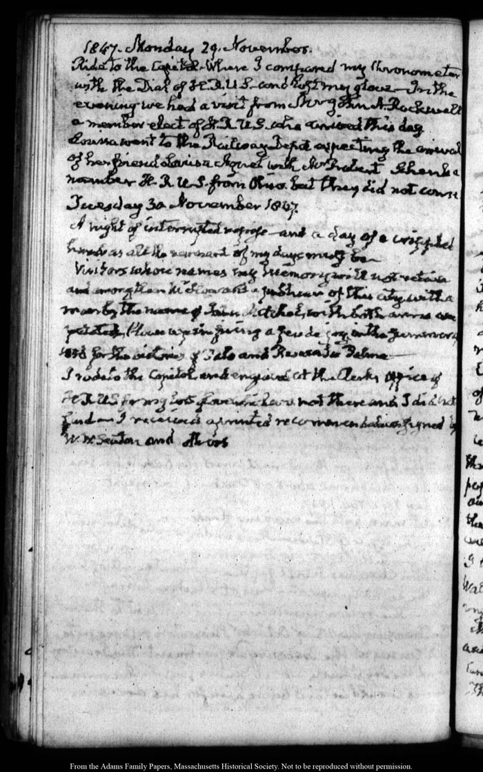 View full, authoritative transcriptions with page images of the diaries at John Quincy Adams Digital Diary part of the Primary Source Cooperative at the MHS.