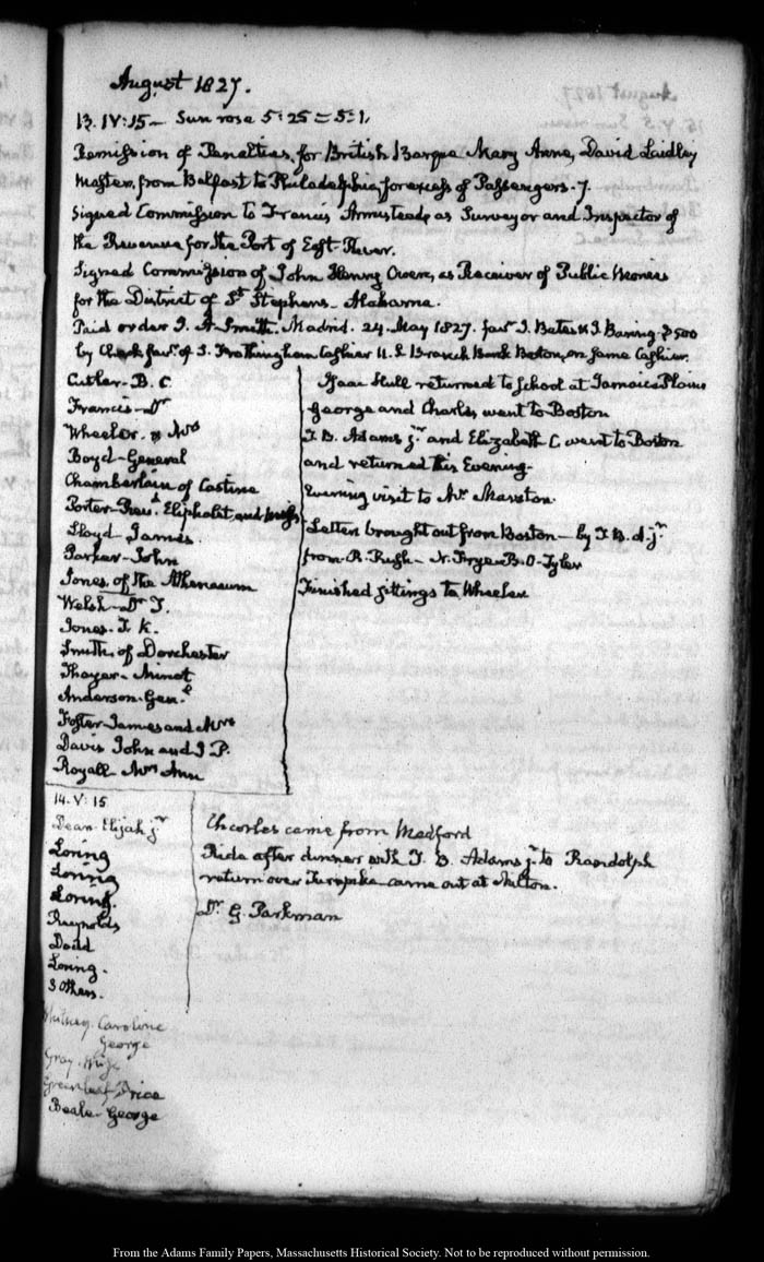 View full, authoritative transcriptions with page images of the diaries at John Quincy Adams Digital Diary part of the Primary Source Cooperative at the MHS.