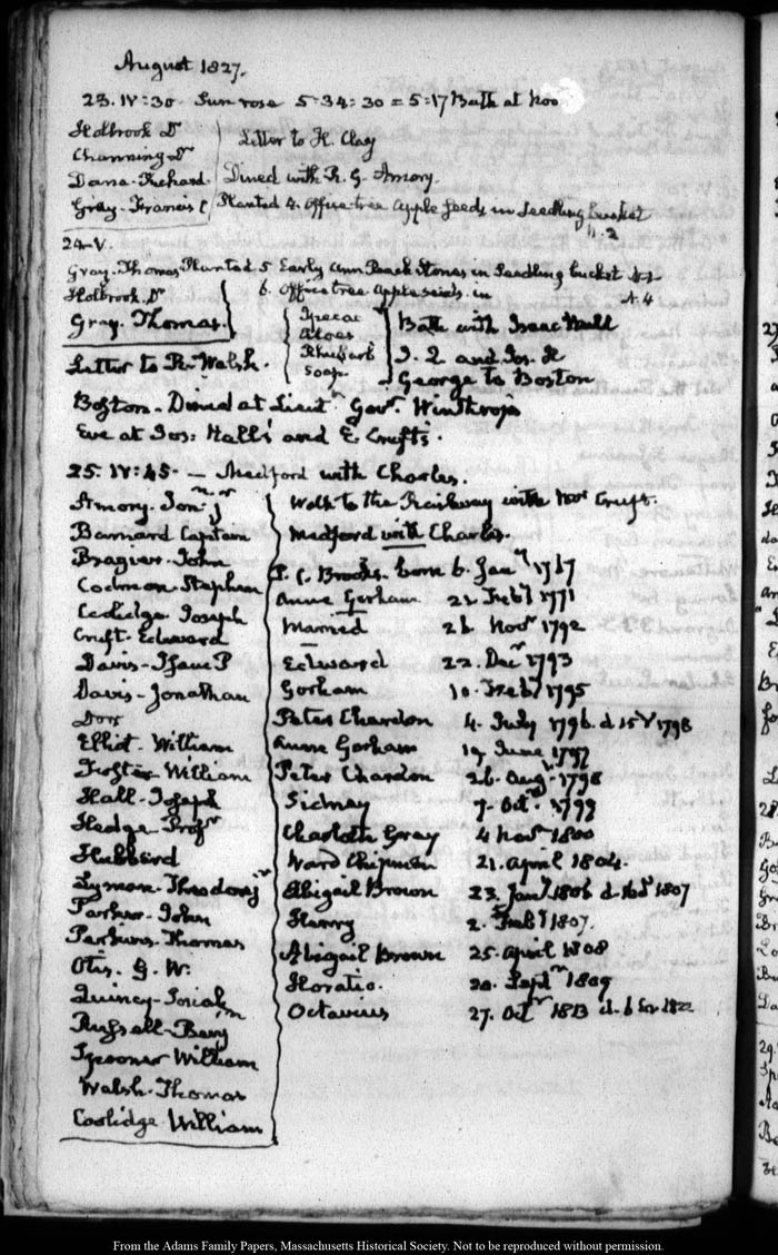 View full, authoritative transcriptions with page images of the diaries at John Quincy Adams Digital Diary part of the Primary Source Cooperative at the MHS.
