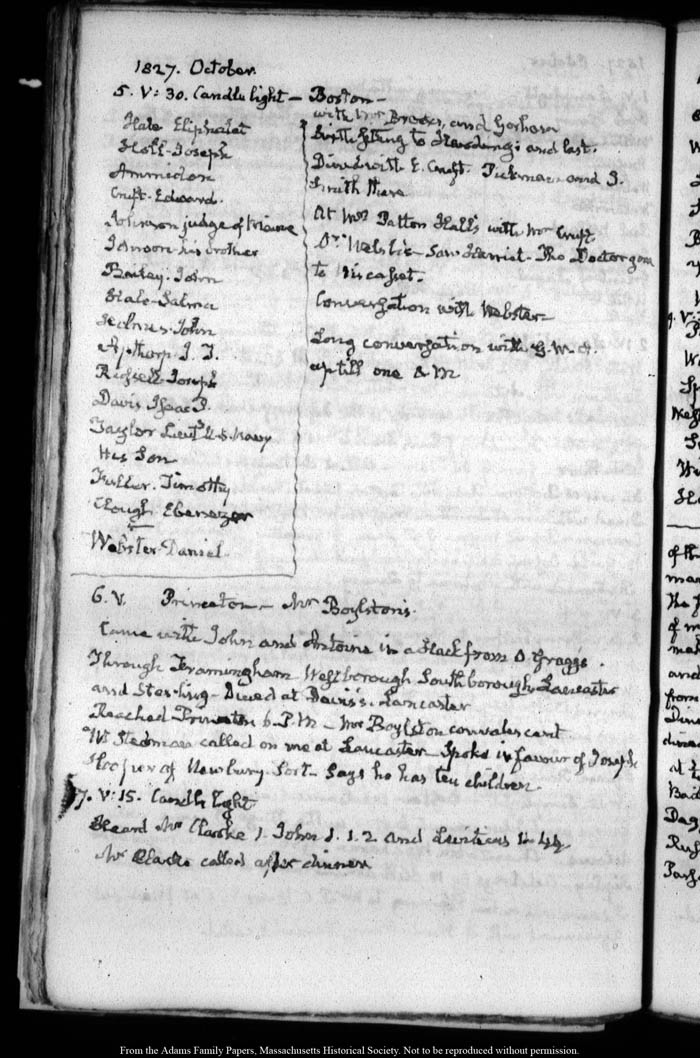 View full, authoritative transcriptions with page images of the diaries at John Quincy Adams Digital Diary part of the Primary Source Cooperative at the MHS.