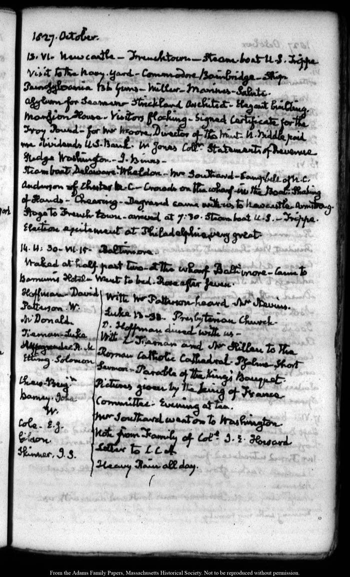 View full, authoritative transcriptions with page images of the diaries at John Quincy Adams Digital Diary part of the Primary Source Cooperative at the MHS.