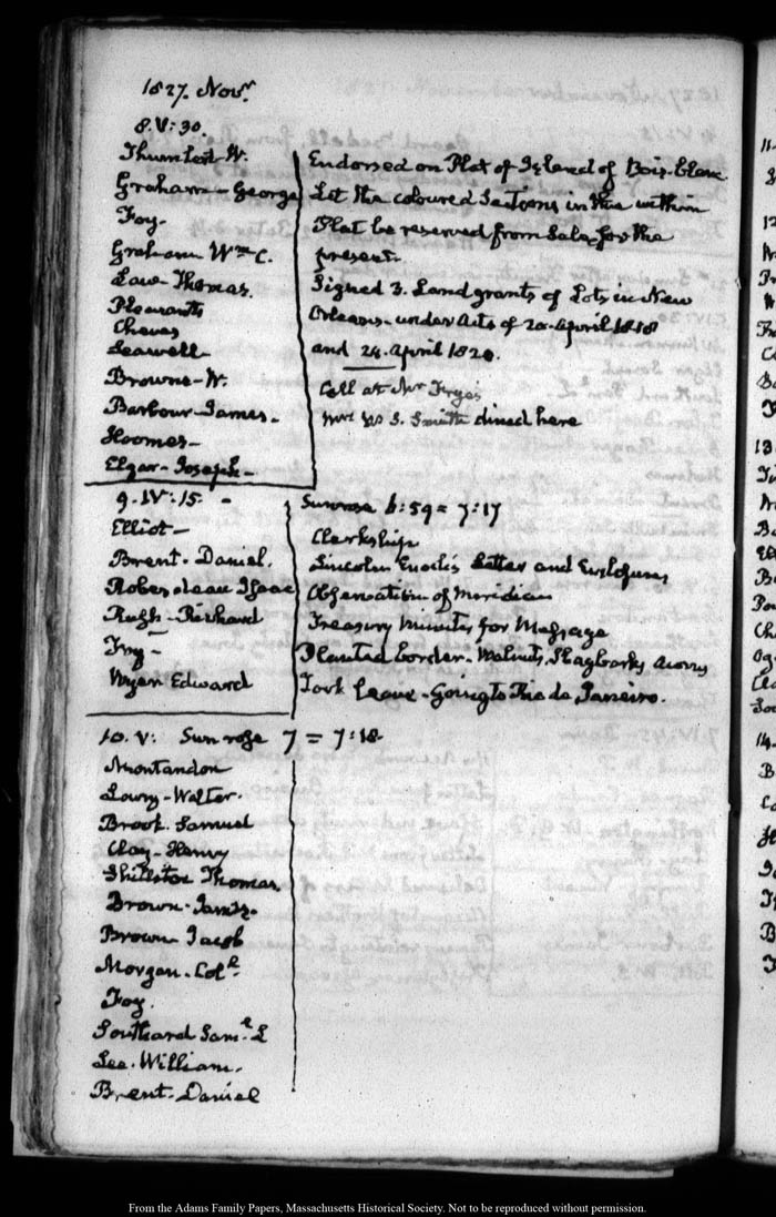 View full, authoritative transcriptions with page images of the diaries at John Quincy Adams Digital Diary part of the Primary Source Cooperative at the MHS.