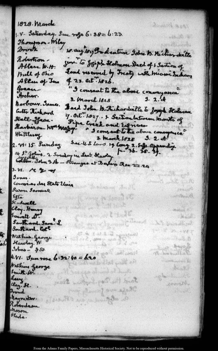 View full, authoritative transcriptions with page images of the diaries at John Quincy Adams Digital Diary part of the Primary Source Cooperative at the MHS.