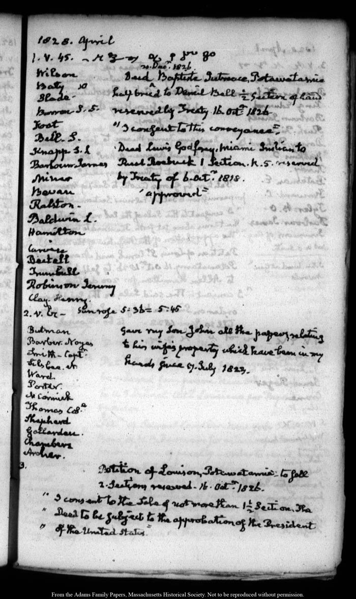 View full, authoritative transcriptions with page images of the diaries at John Quincy Adams Digital Diary part of the Primary Source Cooperative at the MHS.
