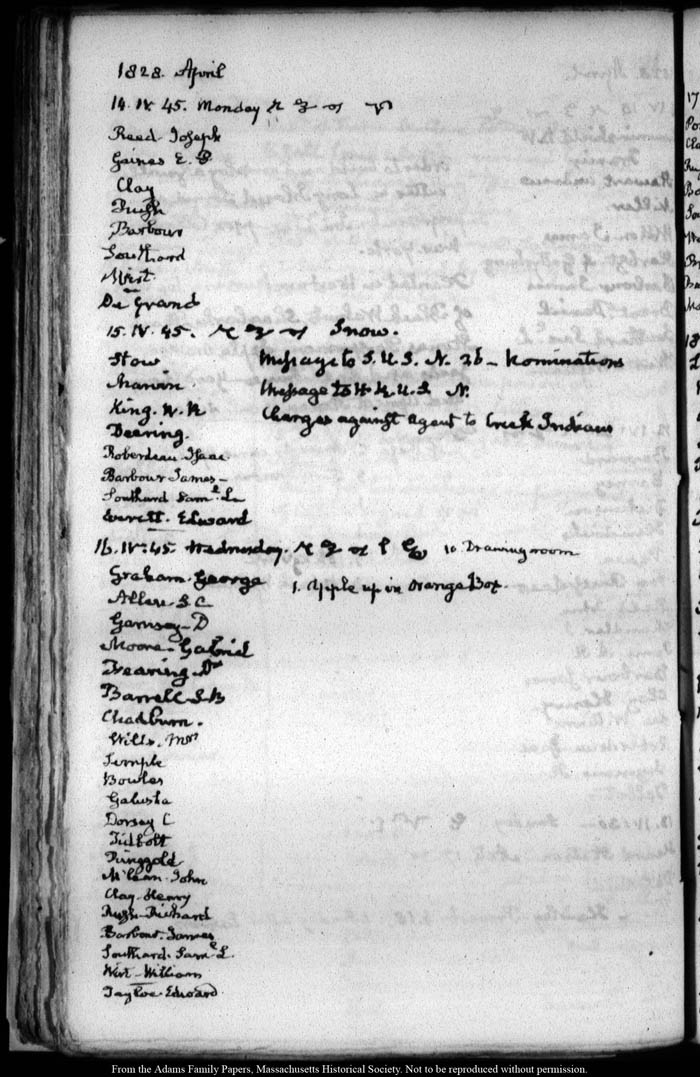 View full, authoritative transcriptions with page images of the diaries at John Quincy Adams Digital Diary part of the Primary Source Cooperative at the MHS.