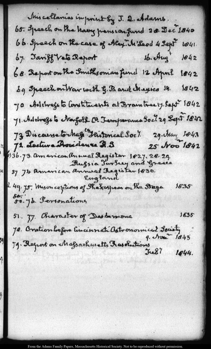 This is our legacy JQA diaries website and allows researchers to view the physical diaries page-by-page.
