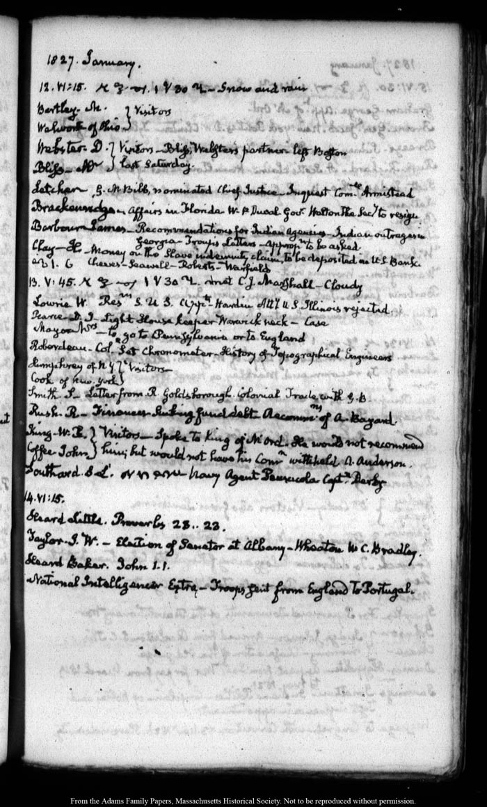 View full, authoritative transcriptions with page images of the diaries at John Quincy Adams Digital Diary part of the Primary Source Cooperative at the MHS.