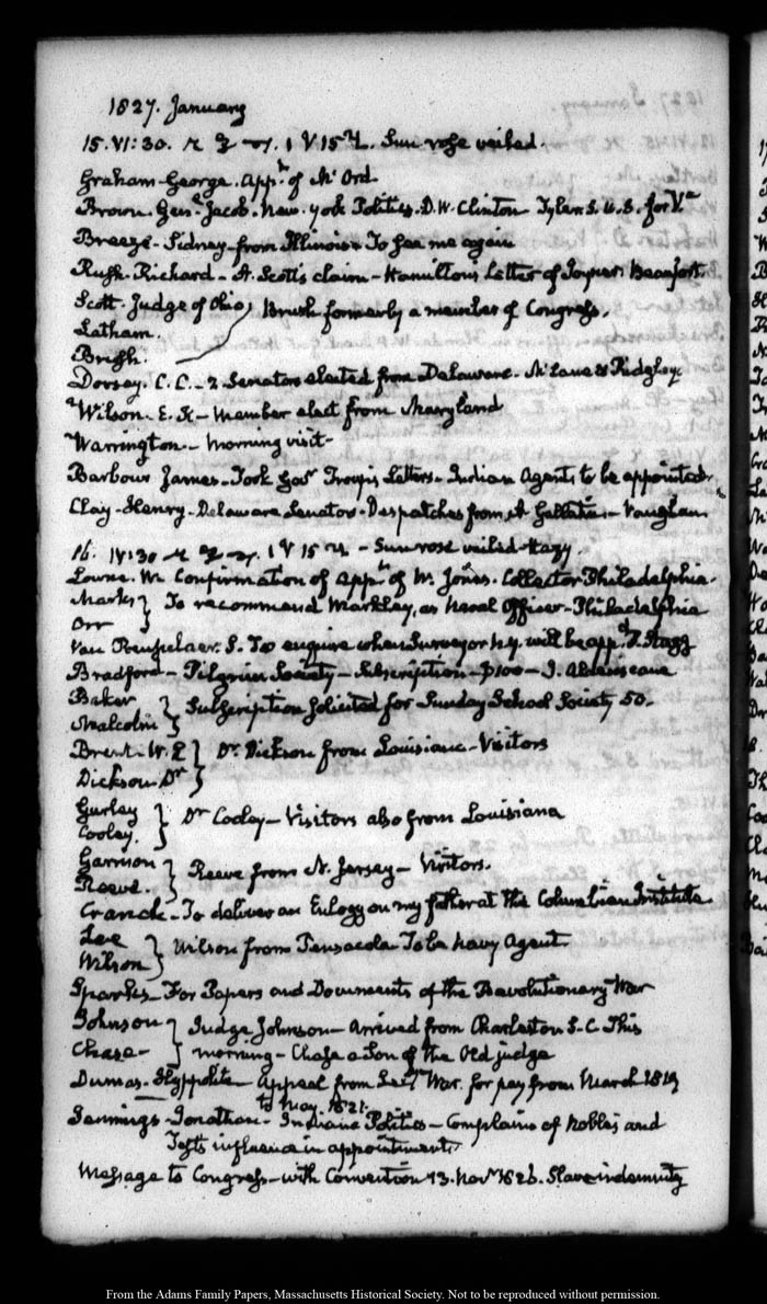 View full, authoritative transcriptions with page images of the diaries at John Quincy Adams Digital Diary part of the Primary Source Cooperative at the MHS.