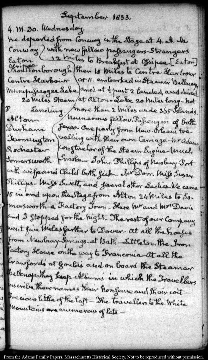View full, authoritative transcriptions with page images of the diaries at John Quincy Adams Digital Diary part of the Primary Source Cooperative at the MHS.