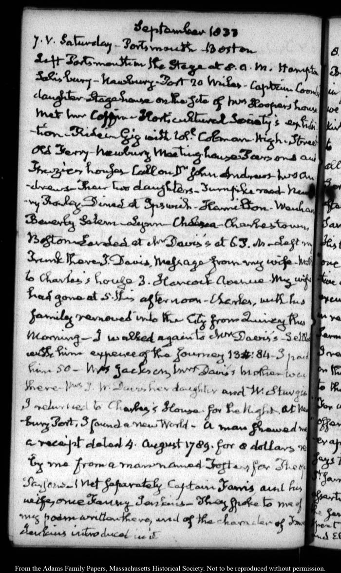 View full, authoritative transcriptions with page images of the diaries at John Quincy Adams Digital Diary part of the Primary Source Cooperative at the MHS.