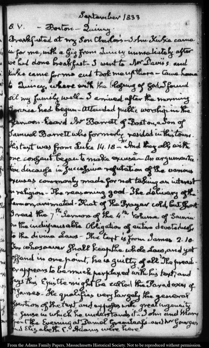 View full, authoritative transcriptions with page images of the diaries at John Quincy Adams Digital Diary part of the Primary Source Cooperative at the MHS.