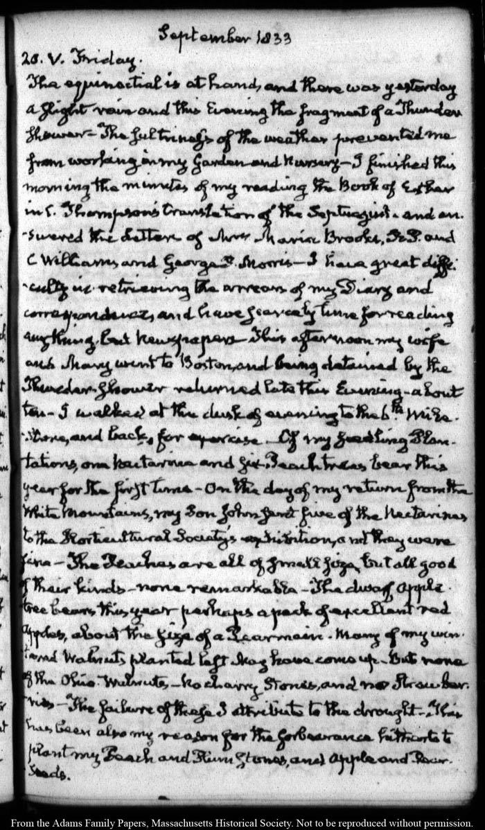 View full, authoritative transcriptions with page images of the diaries at John Quincy Adams Digital Diary part of the Primary Source Cooperative at the MHS.