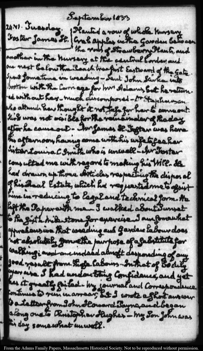 View full, authoritative transcriptions with page images of the diaries at John Quincy Adams Digital Diary part of the Primary Source Cooperative at the MHS.