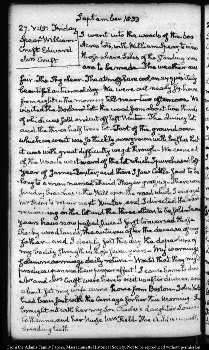 View full, authoritative transcriptions with page images of the diaries at John Quincy Adams Digital Diary part of the Primary Source Cooperative at the MHS.