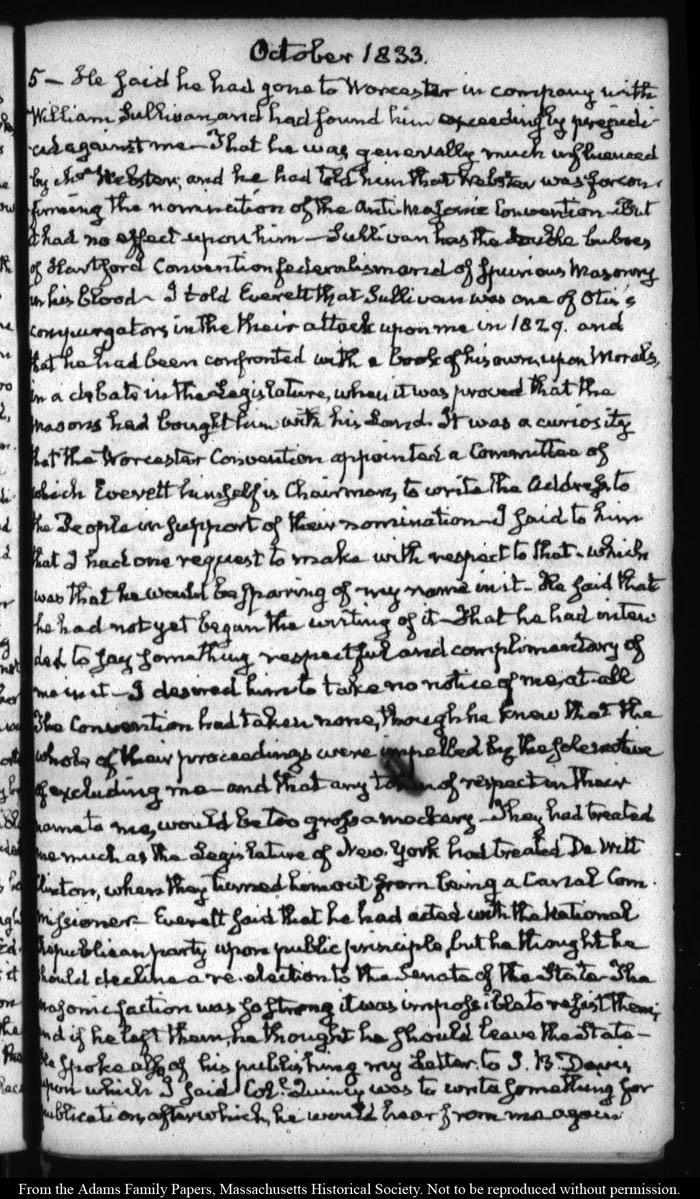 View full, authoritative transcriptions with page images of the diaries at John Quincy Adams Digital Diary part of the Primary Source Cooperative at the MHS.