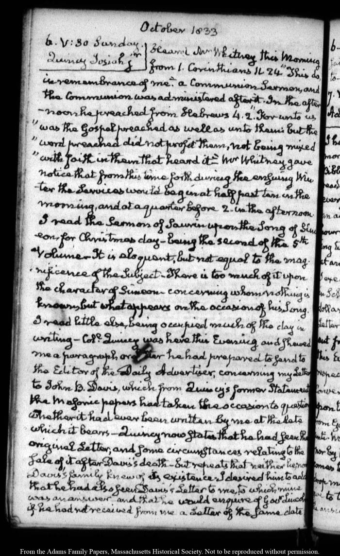 View full, authoritative transcriptions with page images of the diaries at John Quincy Adams Digital Diary part of the Primary Source Cooperative at the MHS.
