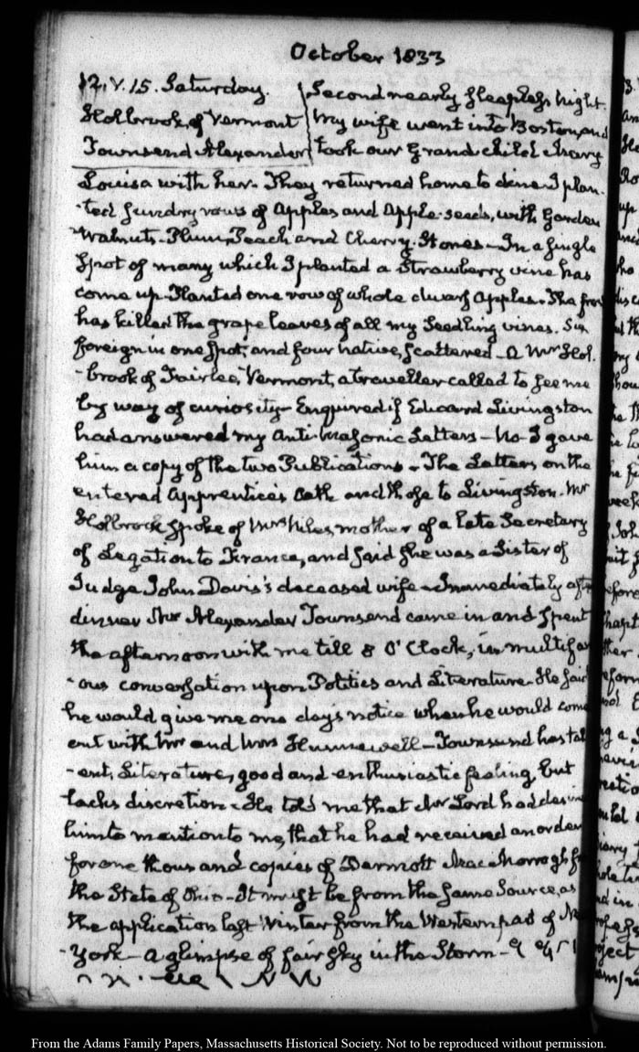 View full, authoritative transcriptions with page images of the diaries at John Quincy Adams Digital Diary part of the Primary Source Cooperative at the MHS.