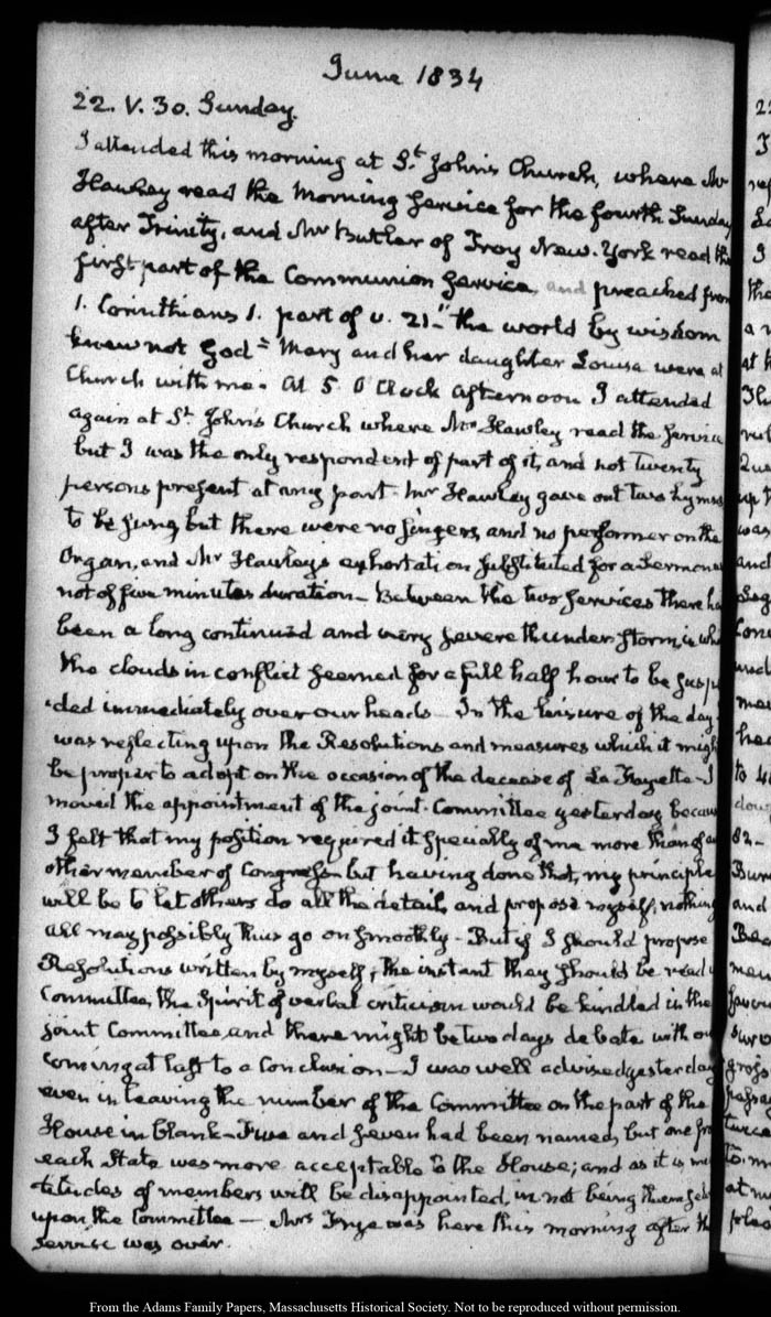 View full, authoritative transcriptions with page images of the diaries at John Quincy Adams Digital Diary part of the Primary Source Cooperative at the MHS.