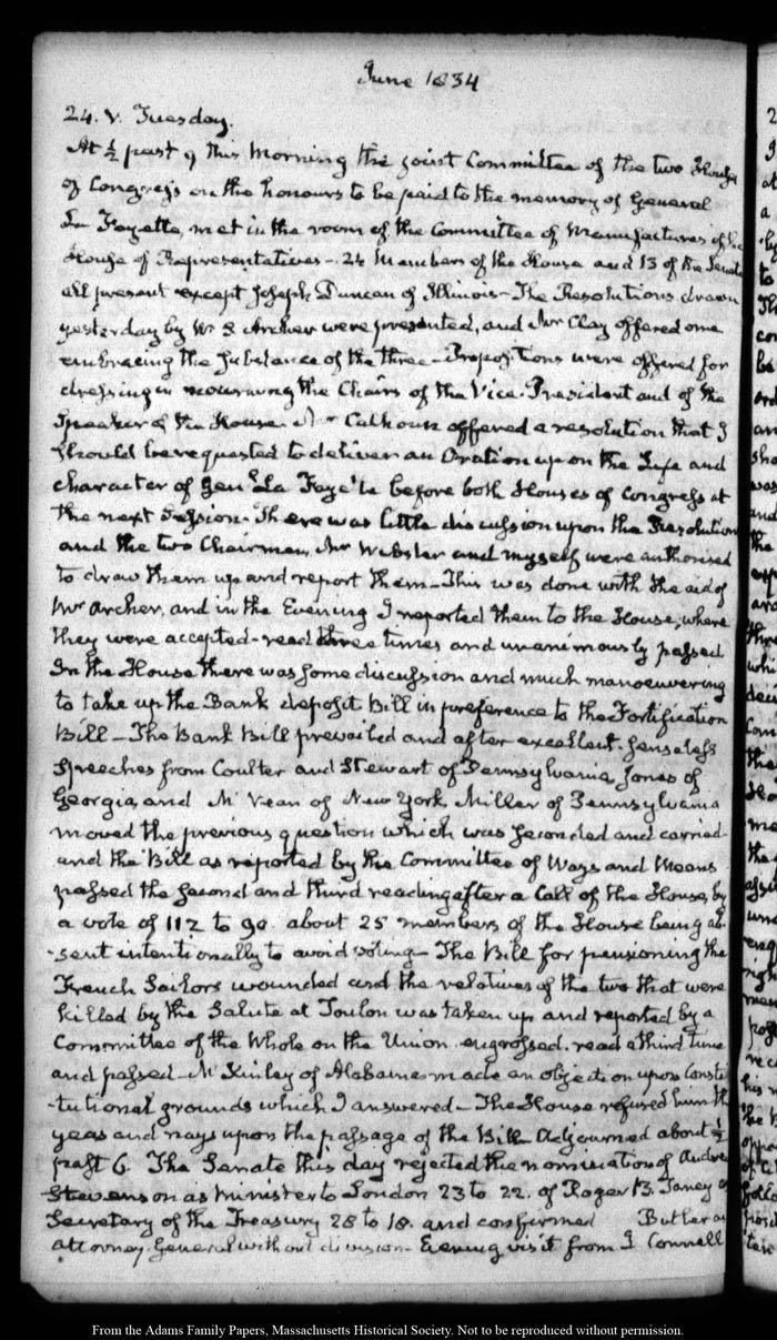 View full, authoritative transcriptions with page images of the diaries at John Quincy Adams Digital Diary part of the Primary Source Cooperative at the MHS.