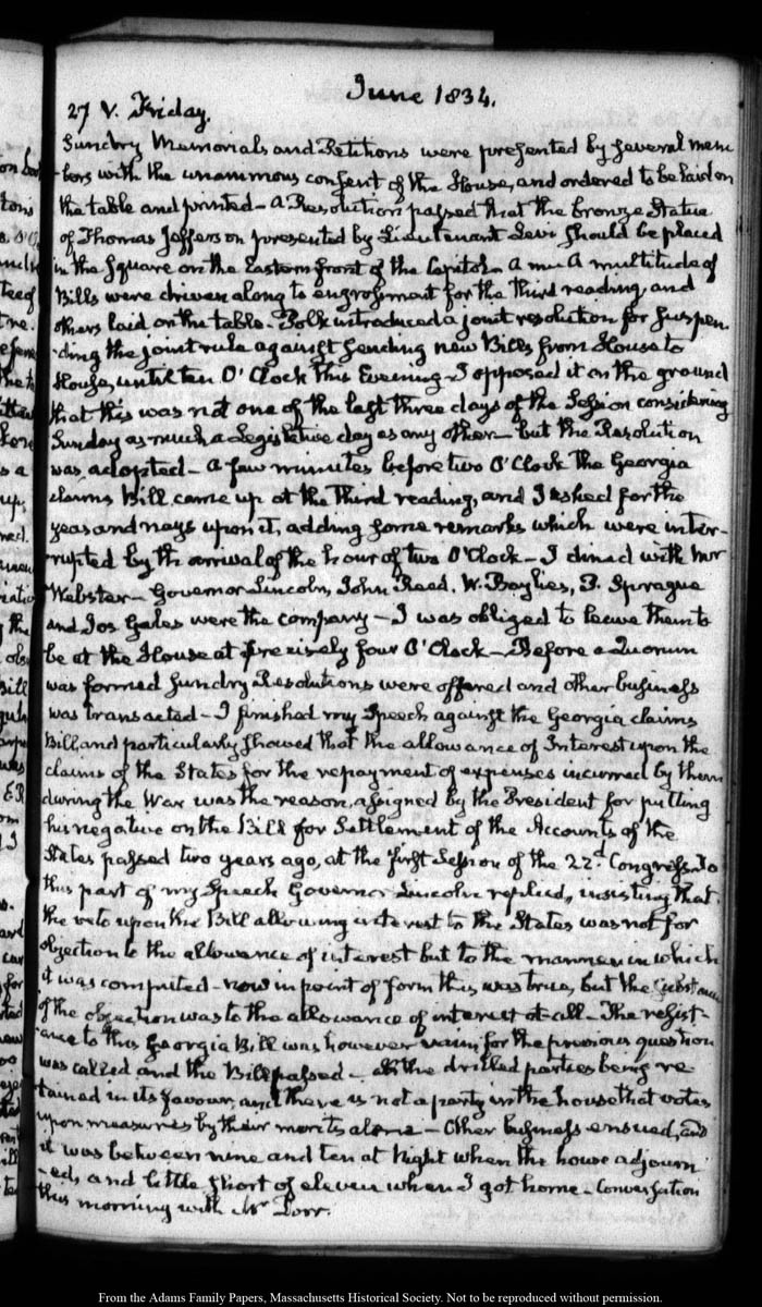 View full, authoritative transcriptions with page images of the diaries at John Quincy Adams Digital Diary part of the Primary Source Cooperative at the MHS.