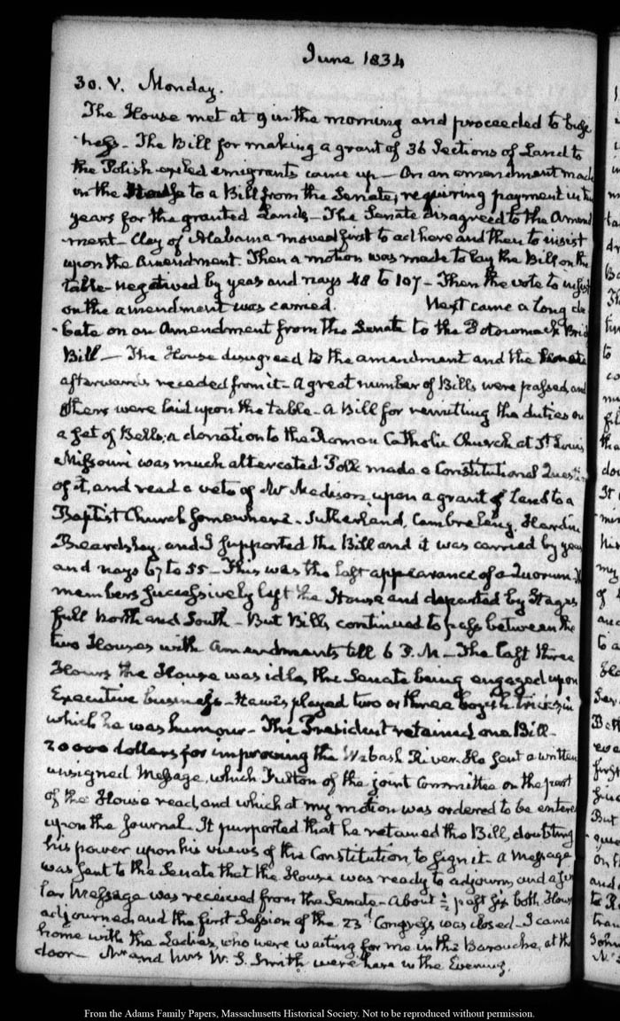 View full, authoritative transcriptions with page images of the diaries at John Quincy Adams Digital Diary part of the Primary Source Cooperative at the MHS.