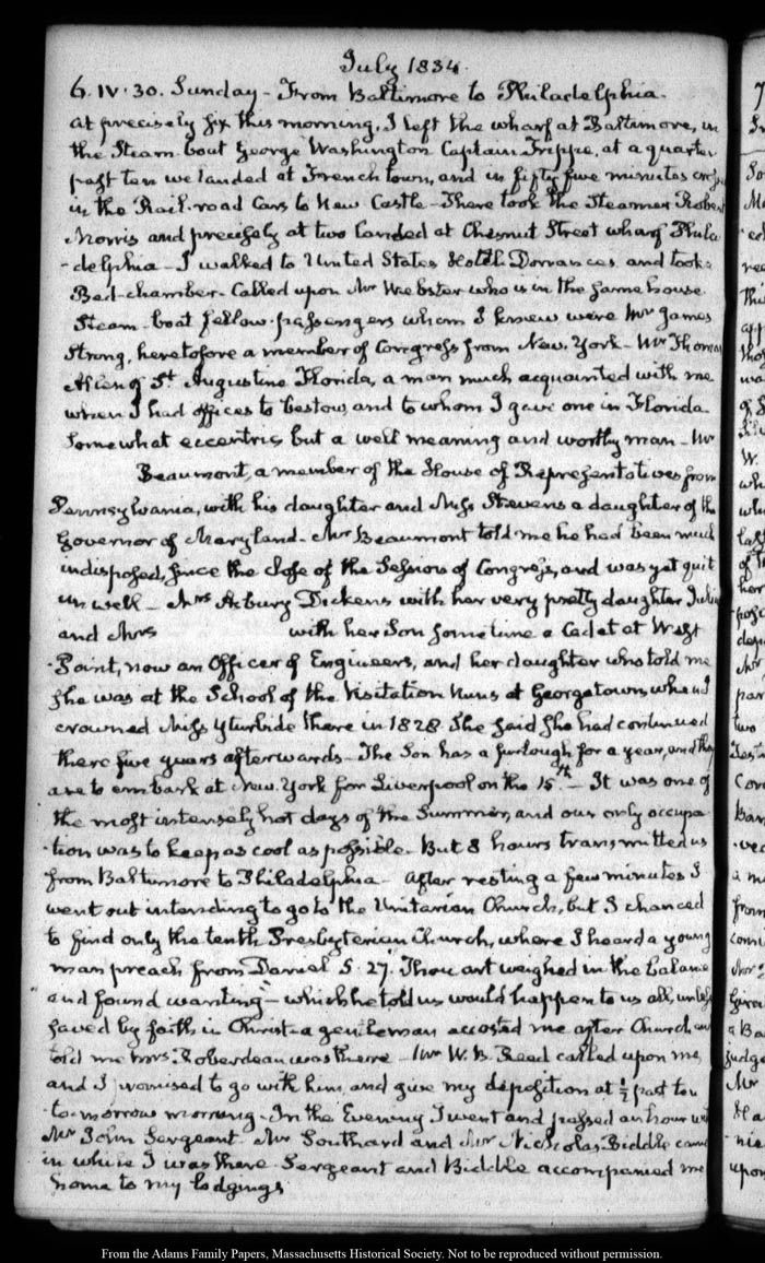 View full, authoritative transcriptions with page images of the diaries at John Quincy Adams Digital Diary part of the Primary Source Cooperative at the MHS.