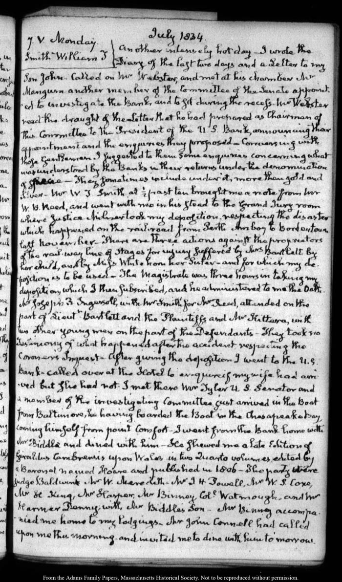 View full, authoritative transcriptions with page images of the diaries at John Quincy Adams Digital Diary part of the Primary Source Cooperative at the MHS.
