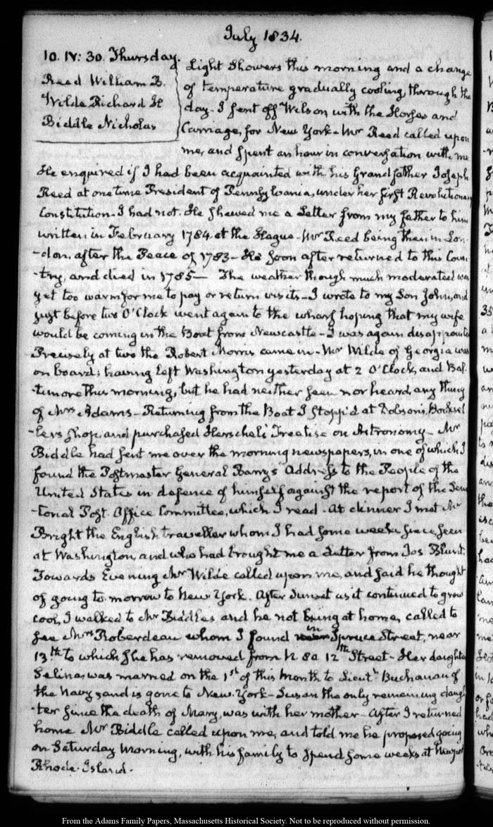View full, authoritative transcriptions with page images of the diaries at John Quincy Adams Digital Diary part of the Primary Source Cooperative at the MHS.