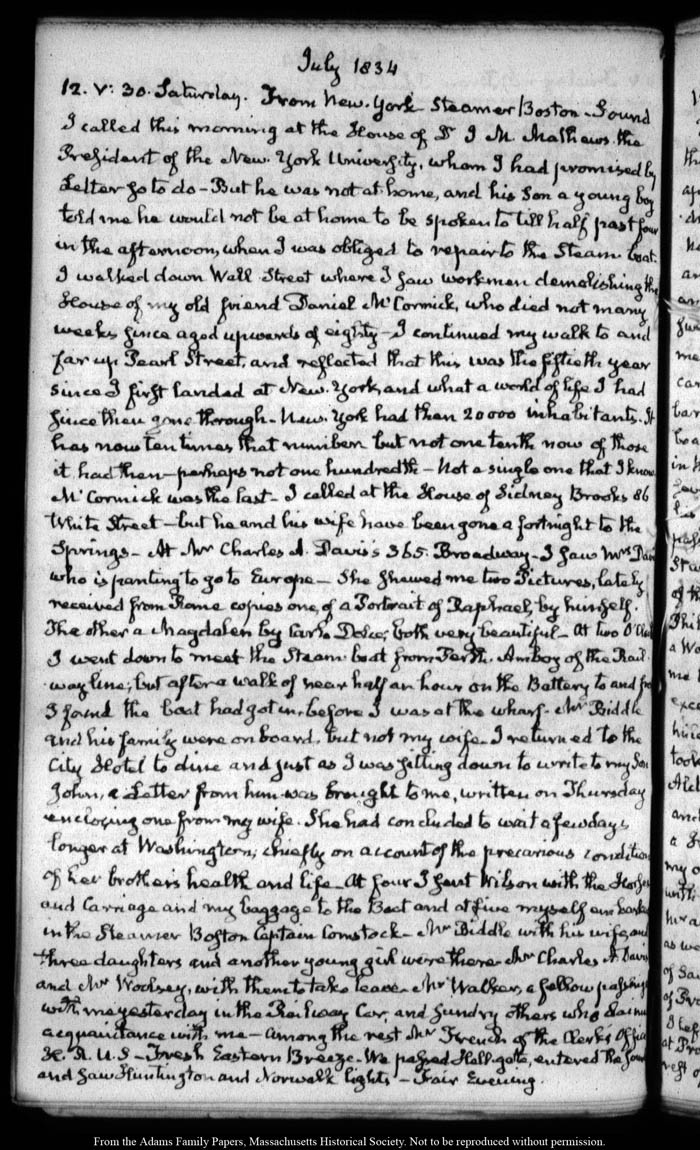 View full, authoritative transcriptions with page images of the diaries at John Quincy Adams Digital Diary part of the Primary Source Cooperative at the MHS.