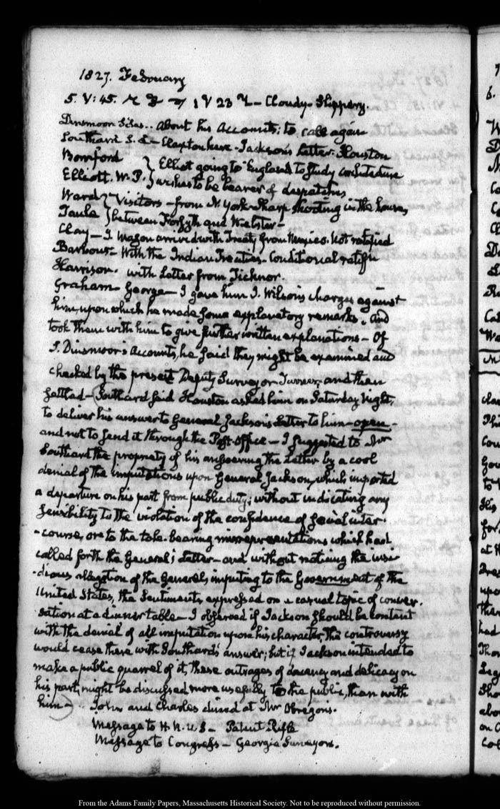 View full, authoritative transcriptions with page images of the diaries at John Quincy Adams Digital Diary part of the Primary Source Cooperative at the MHS.