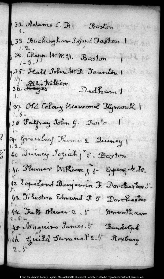 View full, authoritative transcriptions with page images of the diaries at John Quincy Adams Digital Diary part of the Primary Source Cooperative at the MHS.