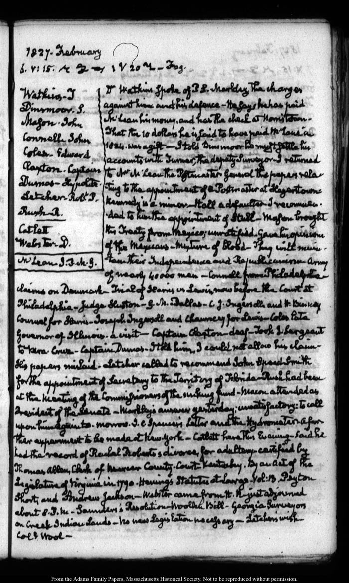 View full, authoritative transcriptions with page images of the diaries at John Quincy Adams Digital Diary part of the Primary Source Cooperative at the MHS.