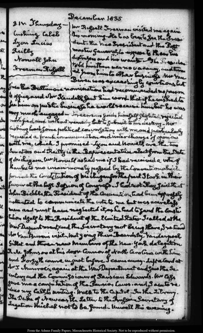 View full, authoritative transcriptions with page images of the diaries at John Quincy Adams Digital Diary part of the Primary Source Cooperative at the MHS.