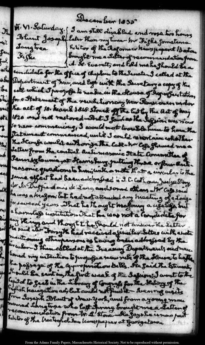View full, authoritative transcriptions with page images of the diaries at John Quincy Adams Digital Diary part of the Primary Source Cooperative at the MHS.