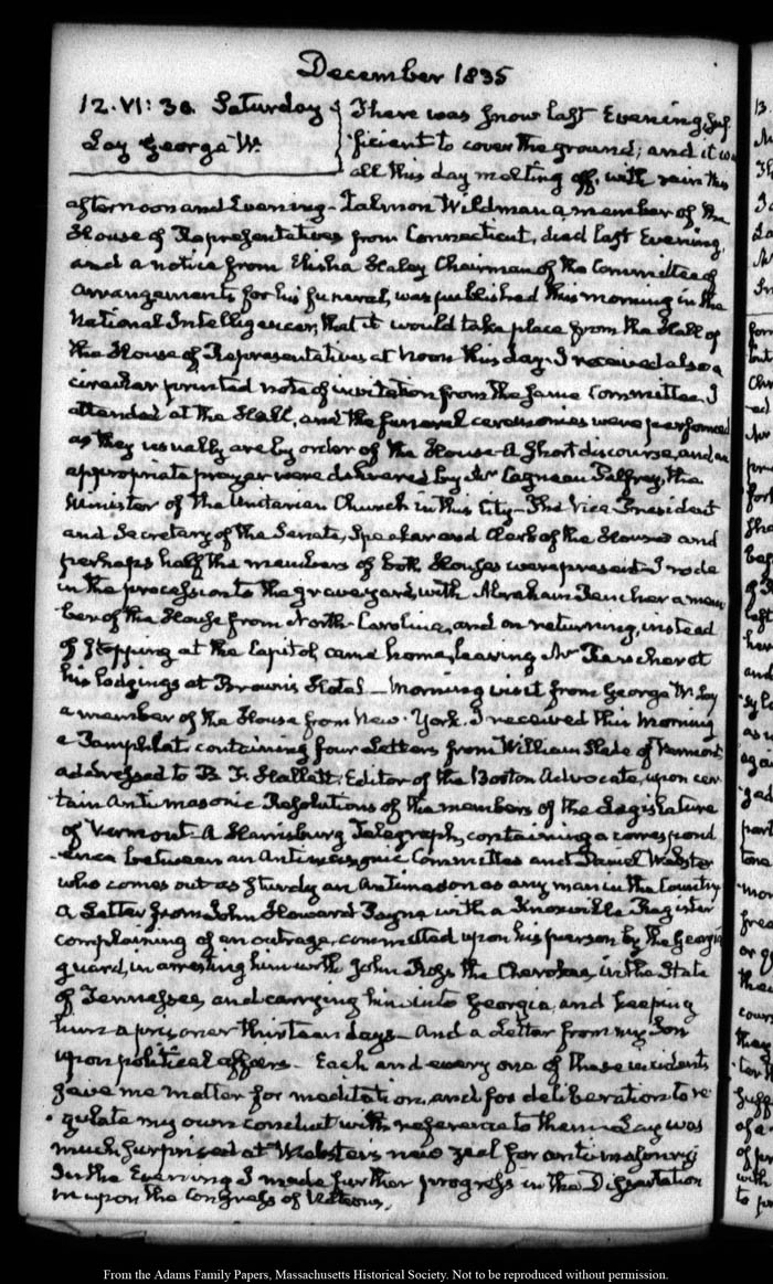 View full, authoritative transcriptions with page images of the diaries at John Quincy Adams Digital Diary part of the Primary Source Cooperative at the MHS.