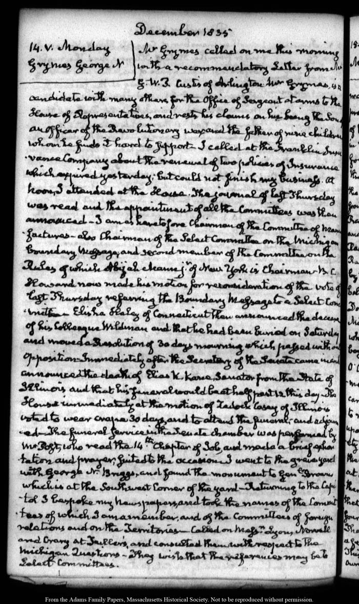 View full, authoritative transcriptions with page images of the diaries at John Quincy Adams Digital Diary part of the Primary Source Cooperative at the MHS.