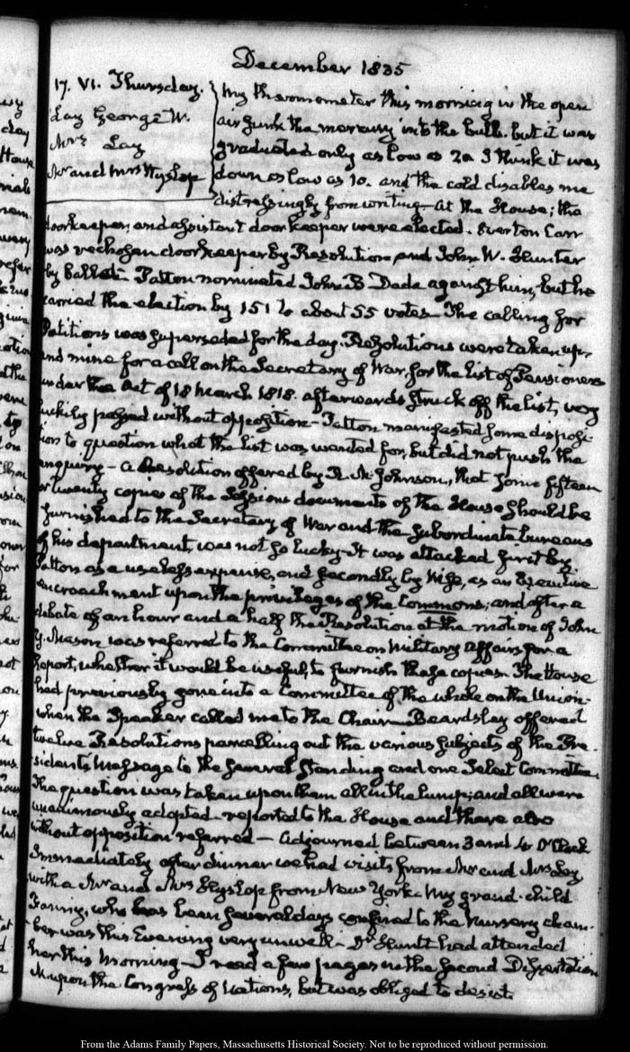 View full, authoritative transcriptions with page images of the diaries at John Quincy Adams Digital Diary part of the Primary Source Cooperative at the MHS.