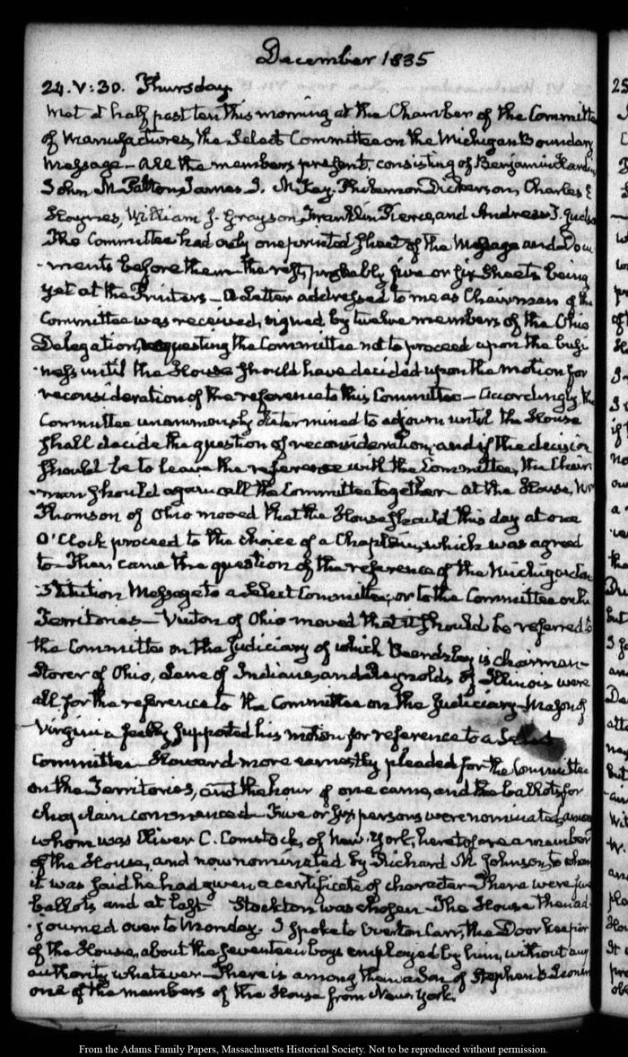 View full, authoritative transcriptions with page images of the diaries at John Quincy Adams Digital Diary part of the Primary Source Cooperative at the MHS.