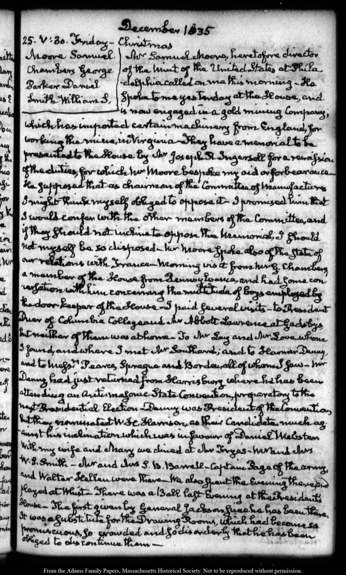 This is our legacy JQA diaries website and allows researchers to view the physical diaries page-by-page.