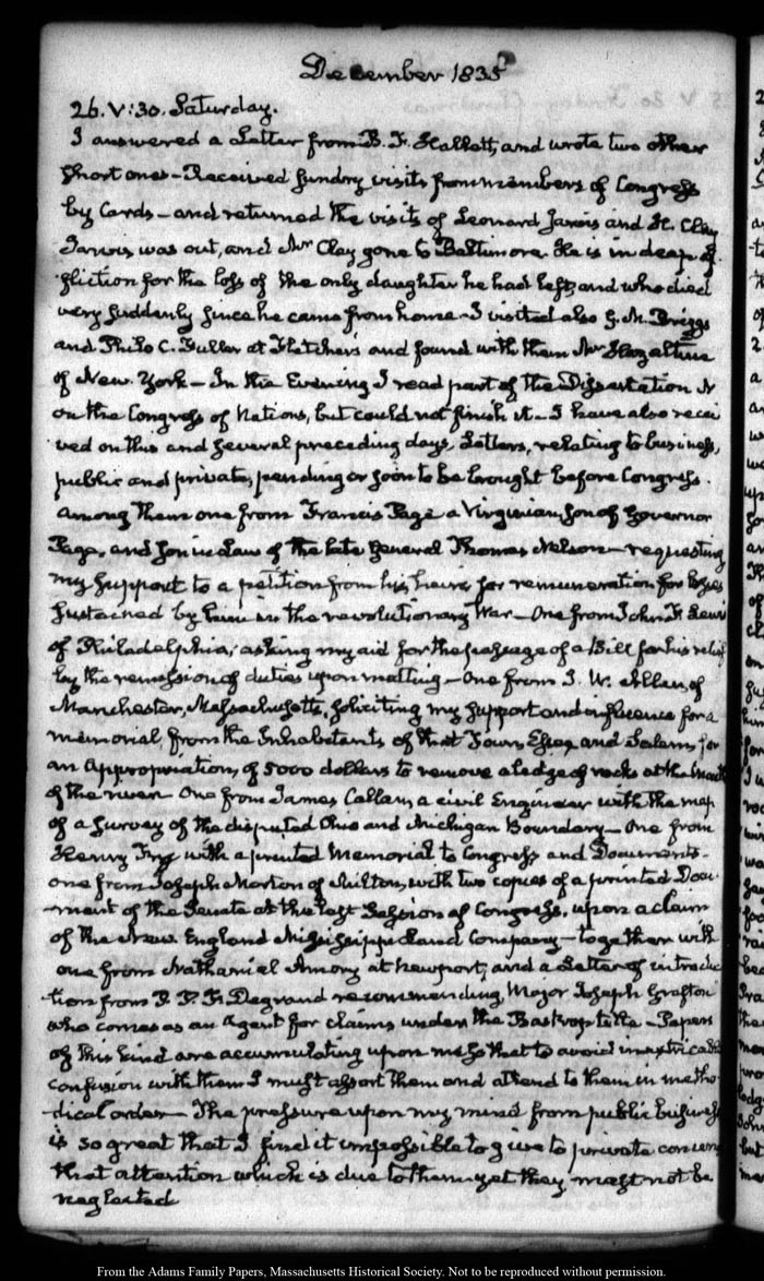 View full, authoritative transcriptions with page images of the diaries at John Quincy Adams Digital Diary part of the Primary Source Cooperative at the MHS.