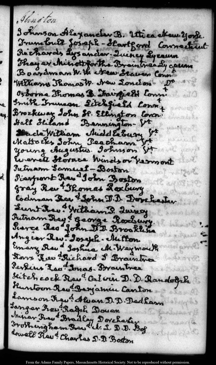 View full, authoritative transcriptions with page images of the diaries at John Quincy Adams Digital Diary part of the Primary Source Cooperative at the MHS.