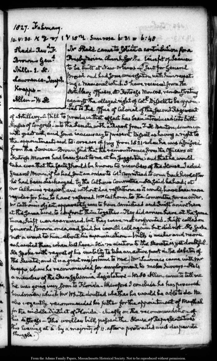 View full, authoritative transcriptions with page images of the diaries at John Quincy Adams Digital Diary part of the Primary Source Cooperative at the MHS.
